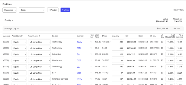 Trade Center. Rebalancing. Advanced Optimizer. Line Optimizer. Once the financial plan is created, the wealth manager will work with the client to implement the plan. This may involve opening investment accounts, selecting specific investments, and making changes to the client's current financial holdings.
